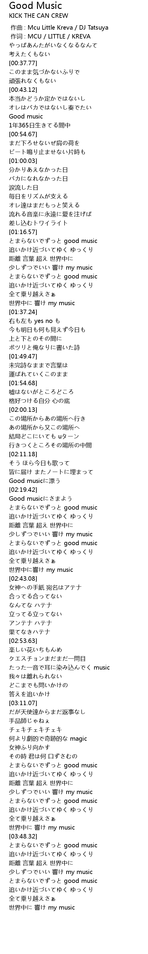 | [00:00.00] | 作曲 : Mcu Little Kreva / DJ Tatsuya |