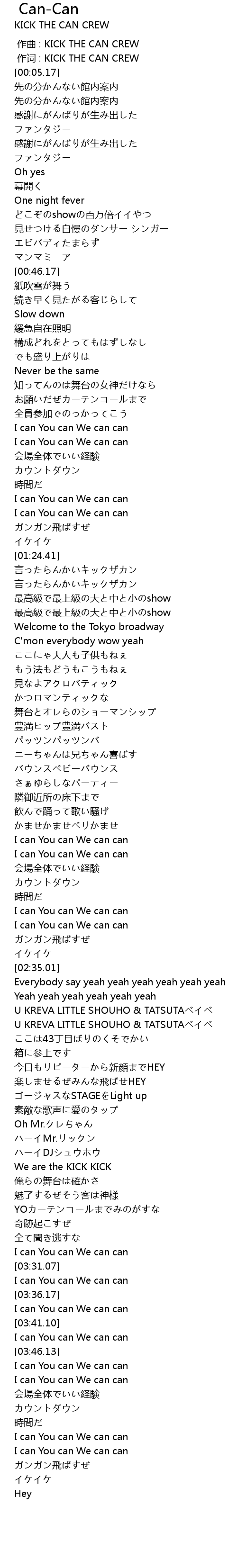 | [00:01.00] | 作词 : KICK THE CAN CREW |