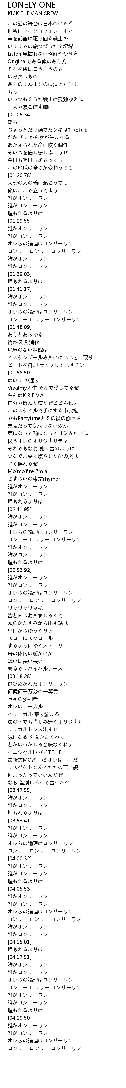 | [01:35.19] | ロンリー ロンリー ロンリーワン |