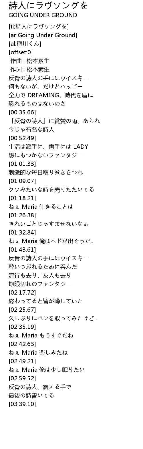 | [02:50.31] | ねぇ Maria 俺は少し眠りたい |