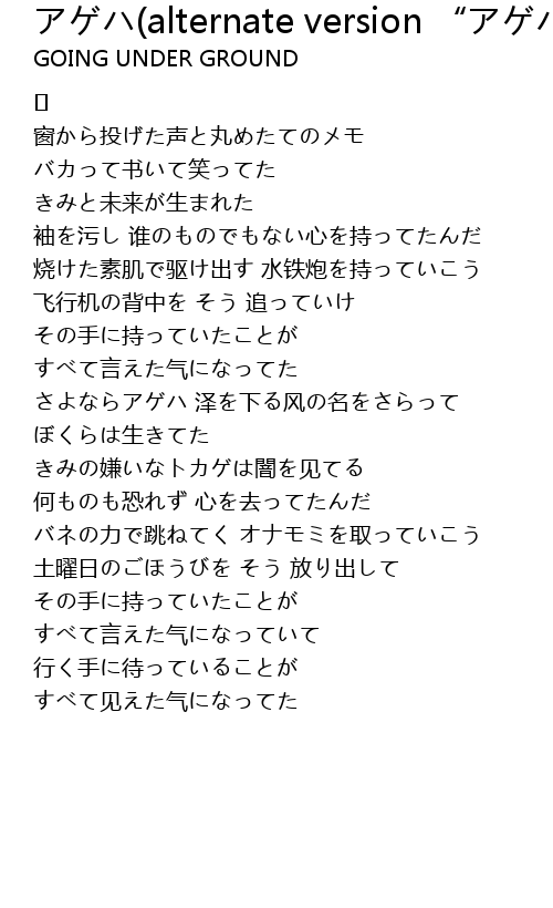 | 歌曲 | アゲハ(alternate version “アゲハとトカゲ”) |