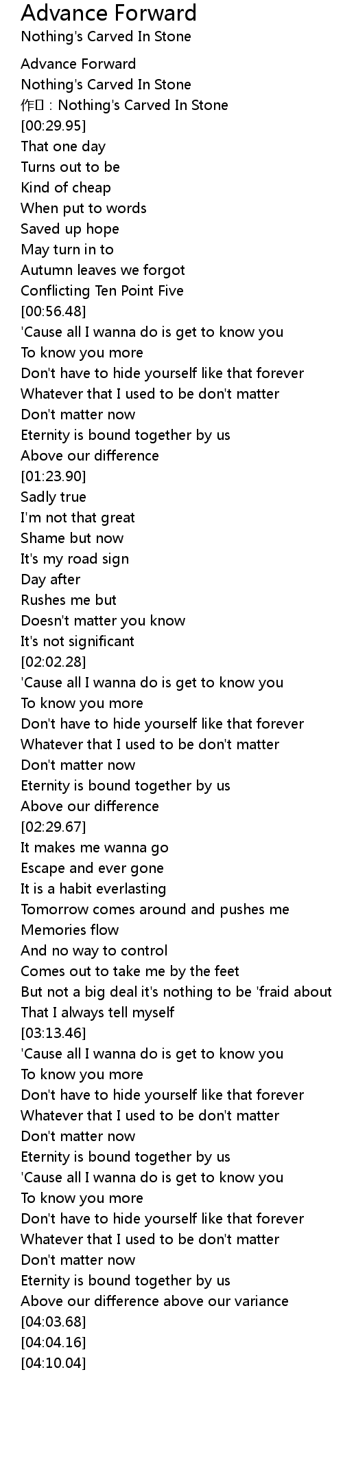 | [00:15.17] | zuo: Nothing' s Carved In Stone |