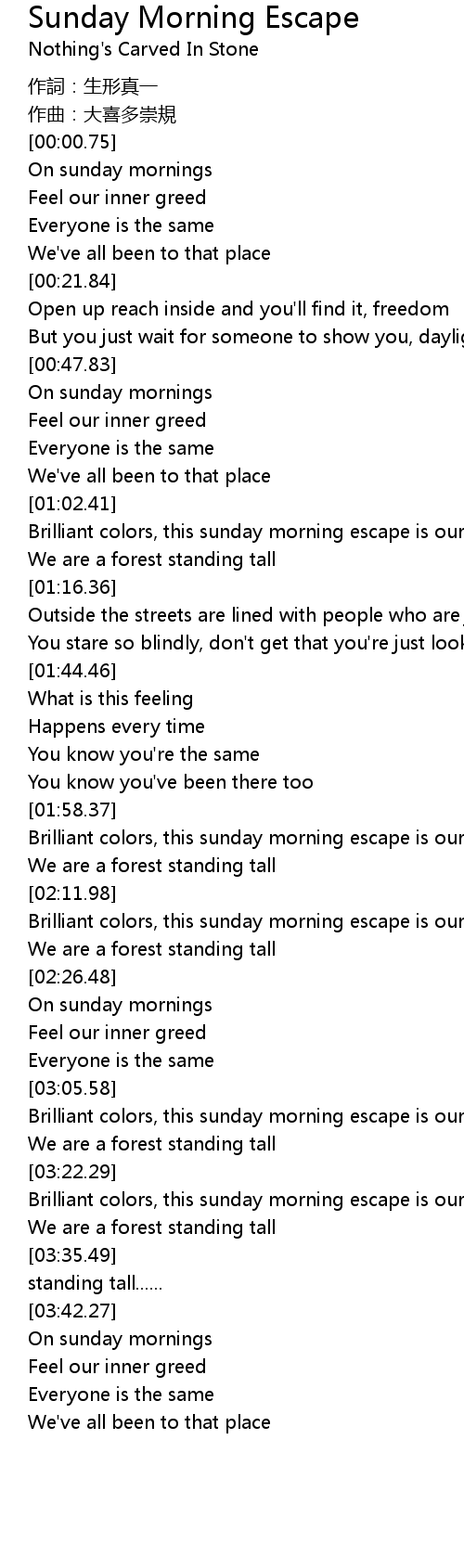 | [00:48.85] | On sunday mornings |
