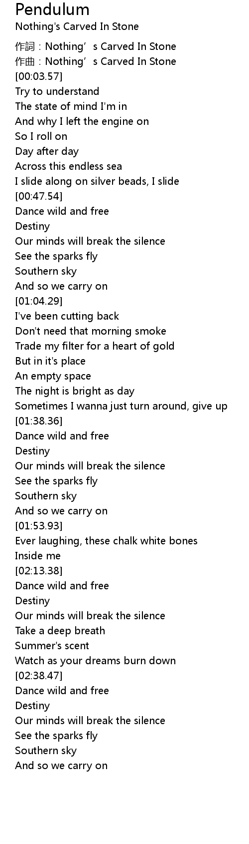 | [00:02.46] | 作詞:Nothing’s Carved In Stone |