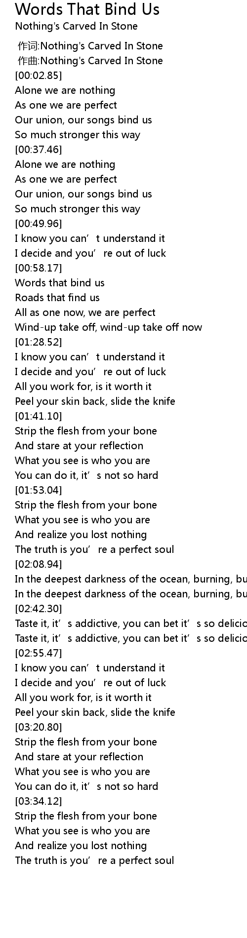 | [01:15.74] | Words that bind us |