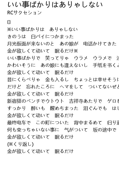 | 昔にくらべりゃ 金も入るし ちょっとは幸せそうに 见えるのさ | |