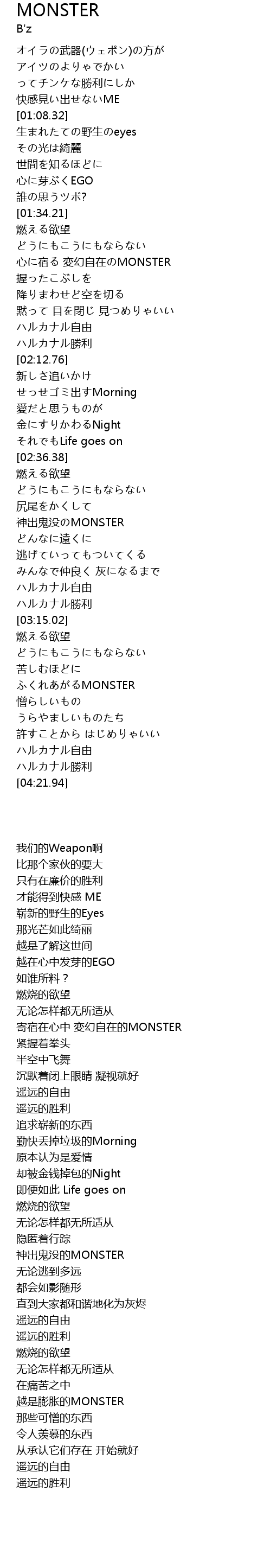 | [02:49.78] | shén chū guǐ mò MONSTER |