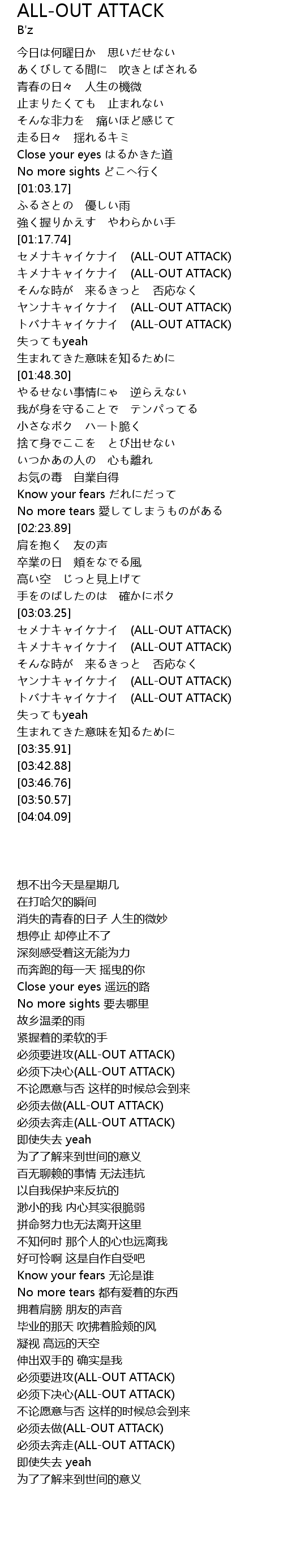 | [03:03.60] | 必须要进攻(ALL-OUT ATTACK) |
