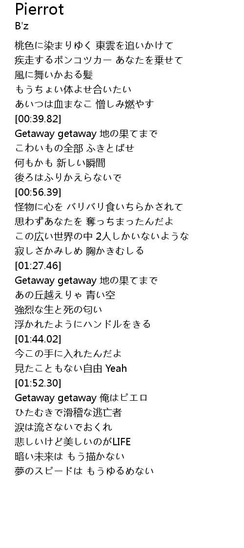 | [02:08.04] | Getaway getaway 俺はピエロ |
