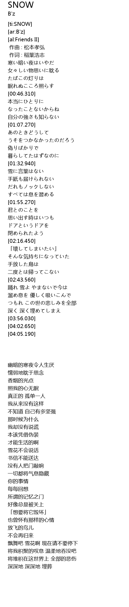 | [03:13.330] | 飘舞吧 雪花啊 现在请不要停下 |