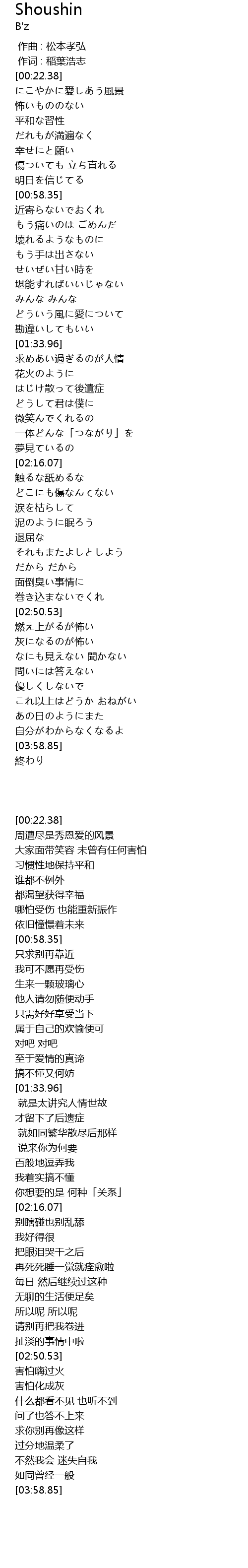 | [00:01.00] | 作词 : 稲葉浩志 |