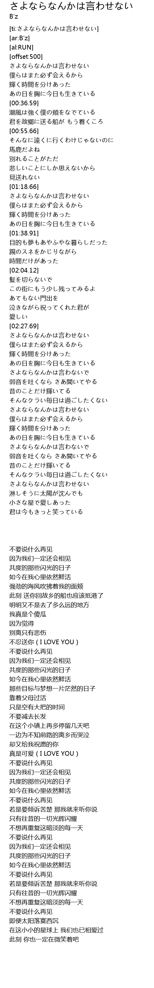 | [ti:さよならなんかは言わせない] | |