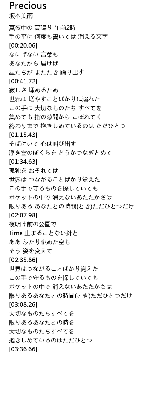 | [01:59.83] | 限りある あなたとの時間(とき)ただひとつだけ |