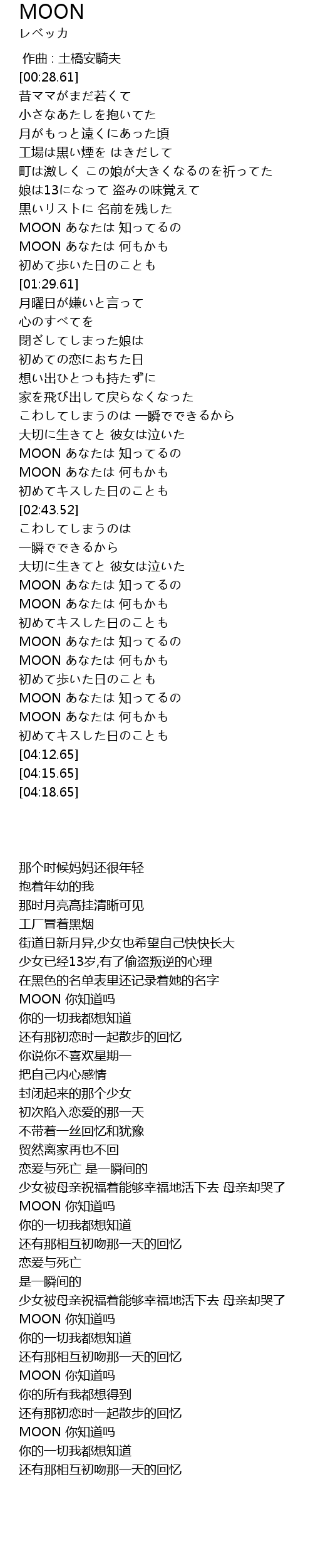 | [00:39.15] | 月がもっと遠くにあった頃 |