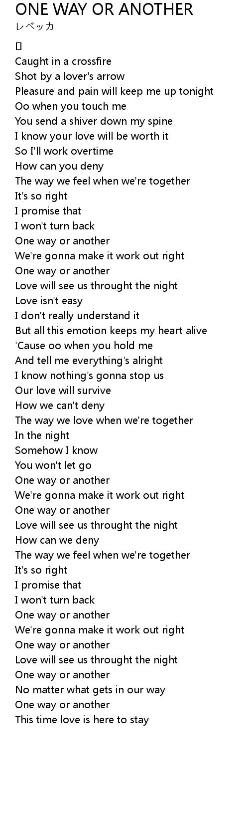 | 歌曲 | ONE WAY OR ANOTHER |