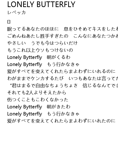 | “君はまるで自由なちょうちょさ 信じるなんてできないよ” | |
