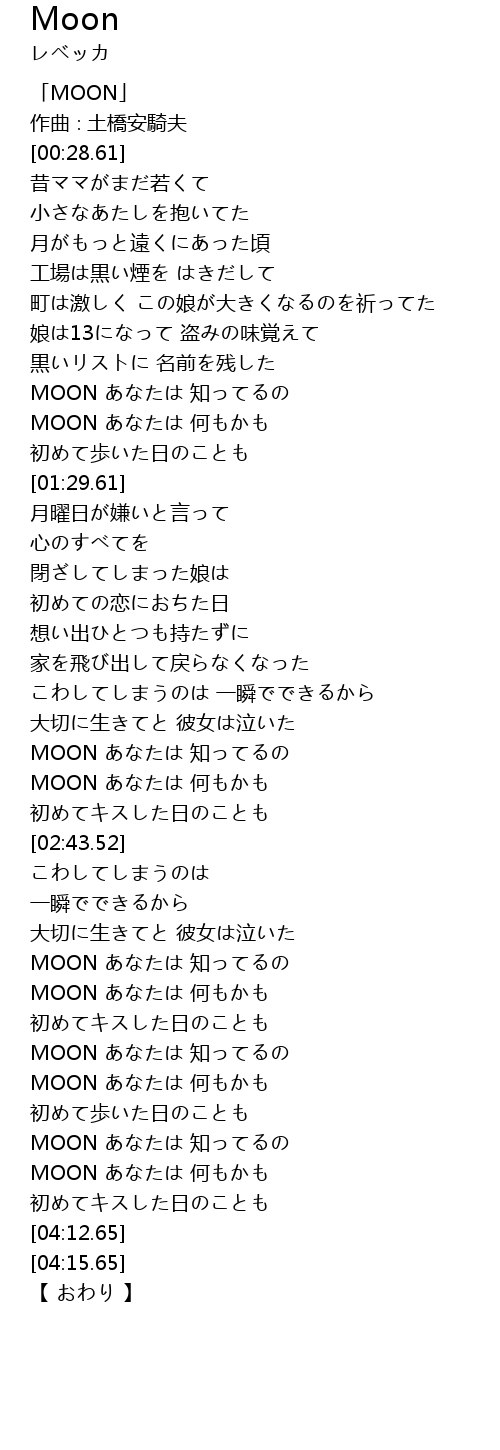 | [00:39.15] | 月がもっと遠くにあった頃 |