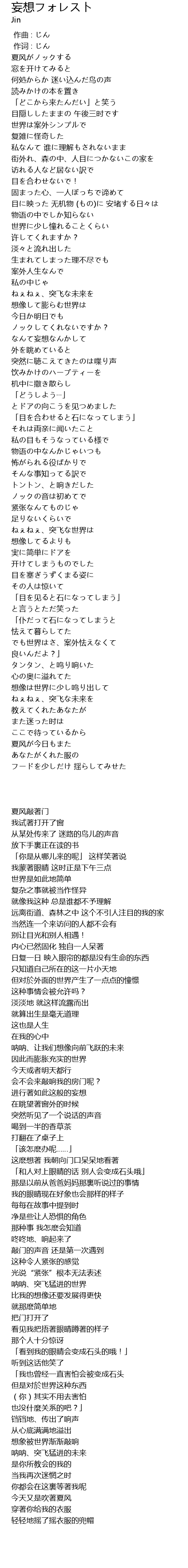 | 歌曲 | 妄想フォレスト |