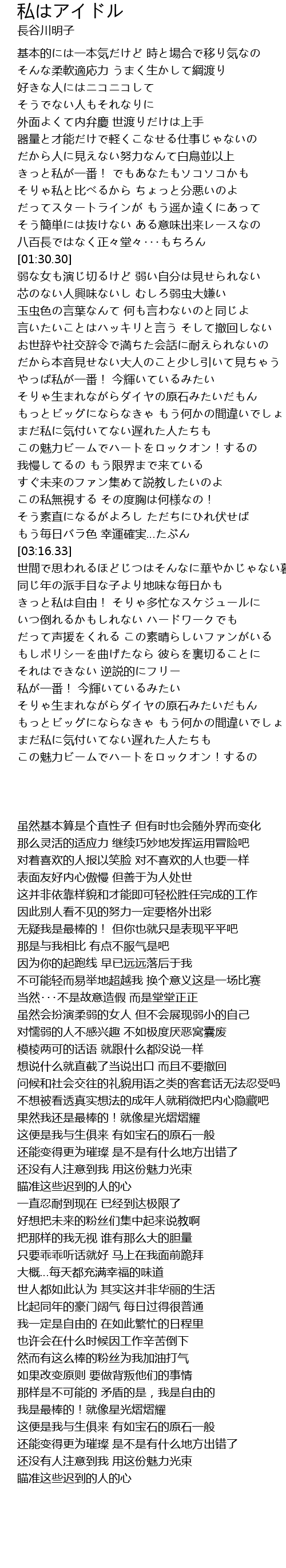 | [02:19.68] | やっぱ私が一番! 今輝いているみたい |