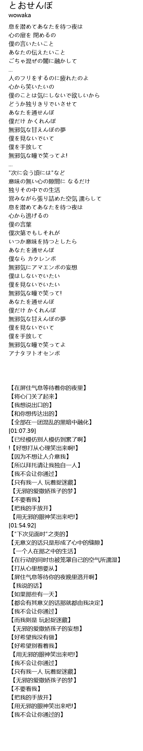 | 歌曲 | とおせんぼ |