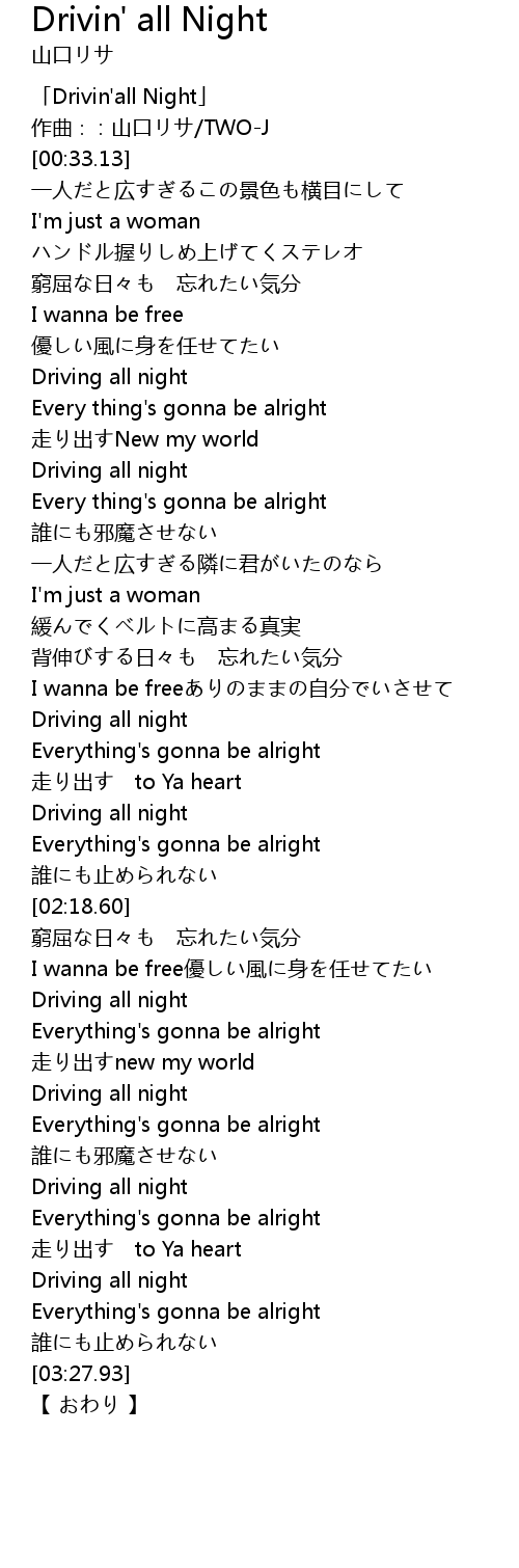 | [00:01.13] | 「Drivin'all Night」 |