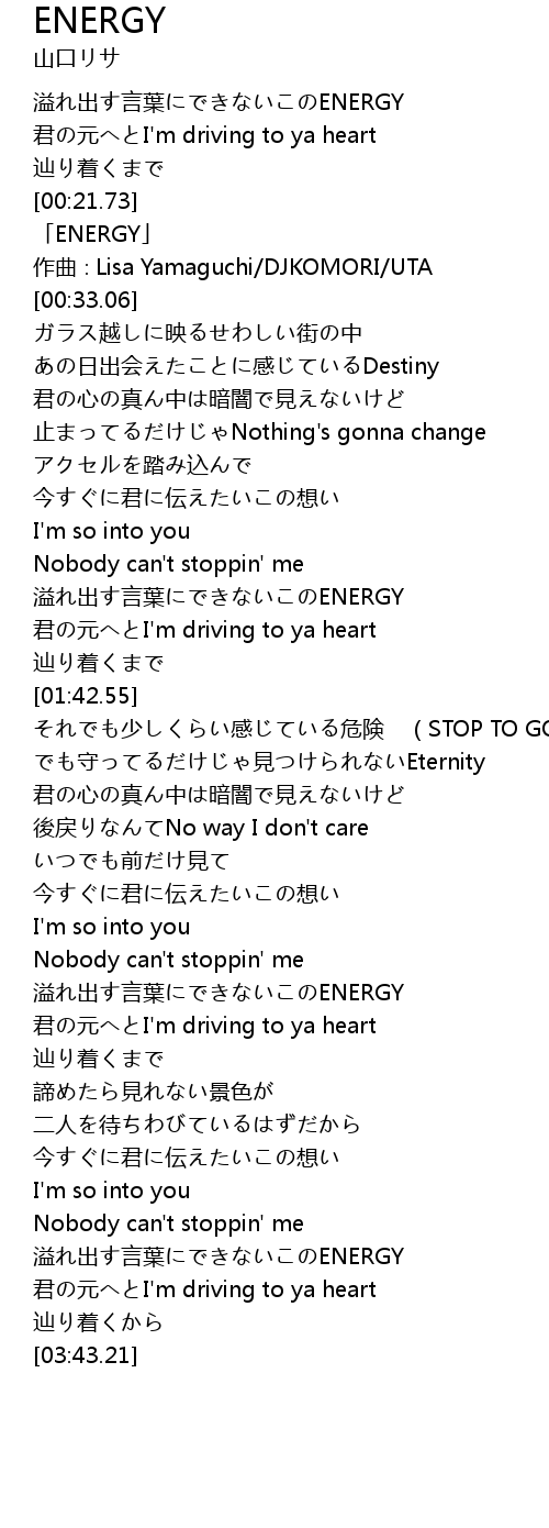 | [03:23.57] | 溢れ出す言葉にできないこのENERGY |