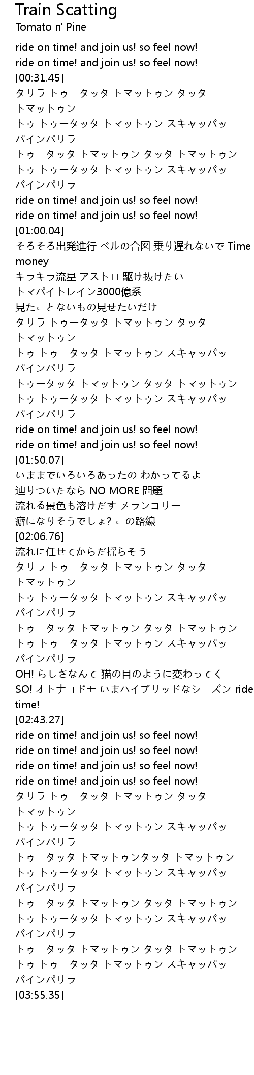 | [00:36.85] | トゥ トゥータッタ トマットゥン スキャッパッ パインパリラ |