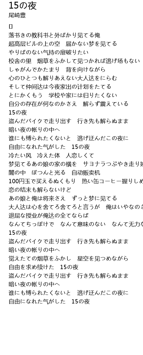 | 歌曲 | 15の夜 |