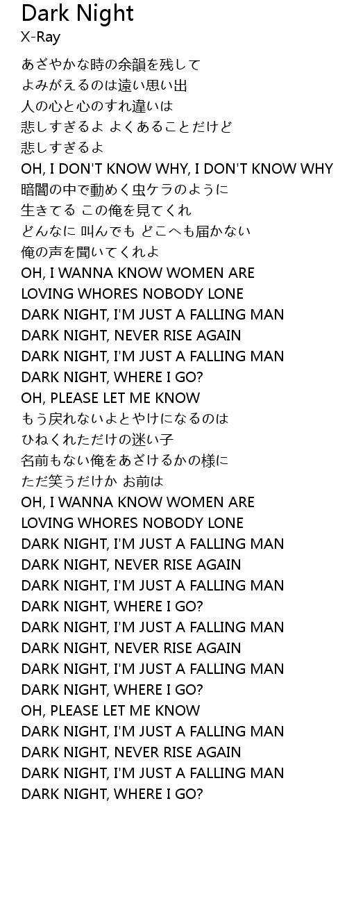 | DARK NIGHT, I'M JUST A FALLING MAN | |