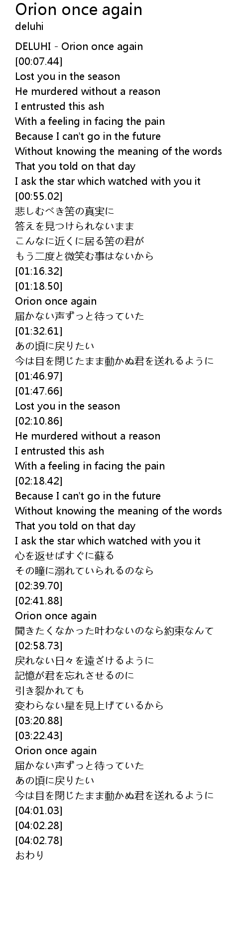 | [03:52.24] | 今は目を閉じたまま動かぬ君を送れるように |