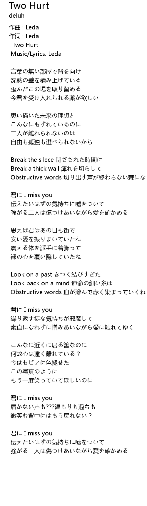 | 歌曲 | Two Hurt |