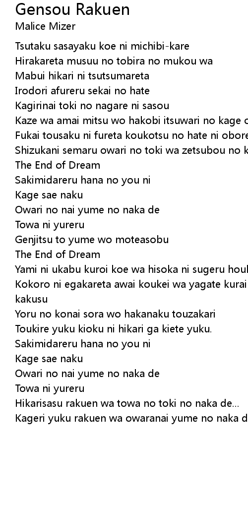 Kageri yuku rakuen wa owaranai yume no naka de... |