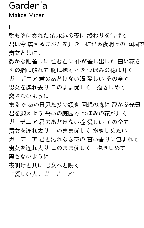 | ガーデニア 君と污れなき花の 甘い香りに包まれて | |