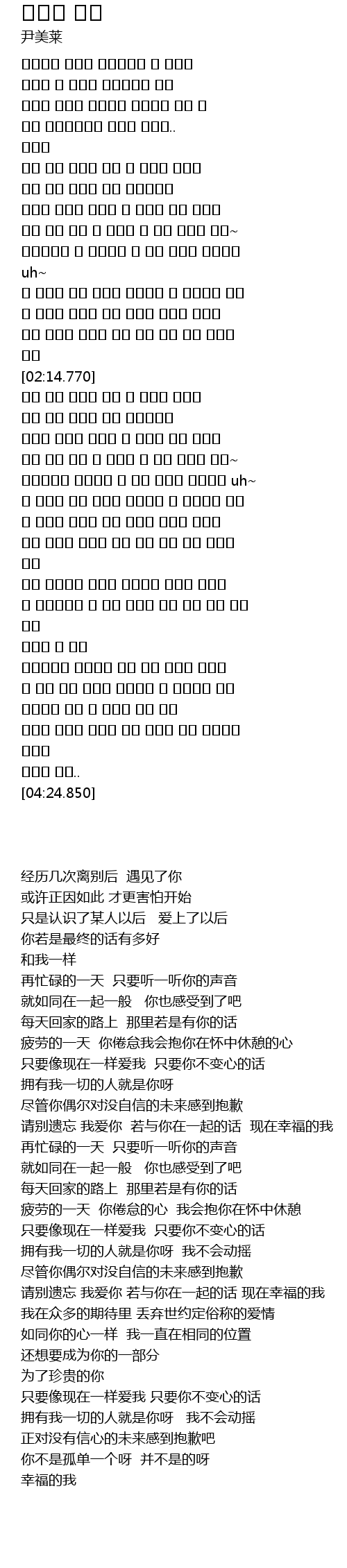 | [03:39.770] | 니 마음처럼난 늘 같은 자리에 또한 나의 니가 되고 싶어 |