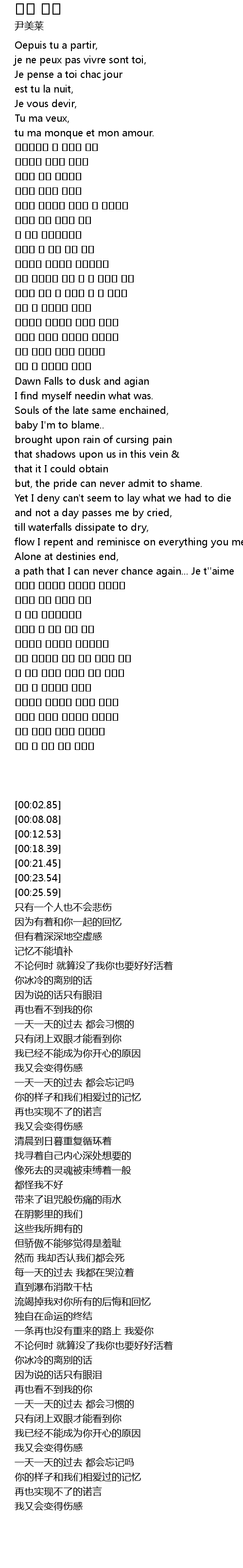 | [01:40.49] | 더이상 그대 내 기쁨이 될 수 없음에 |