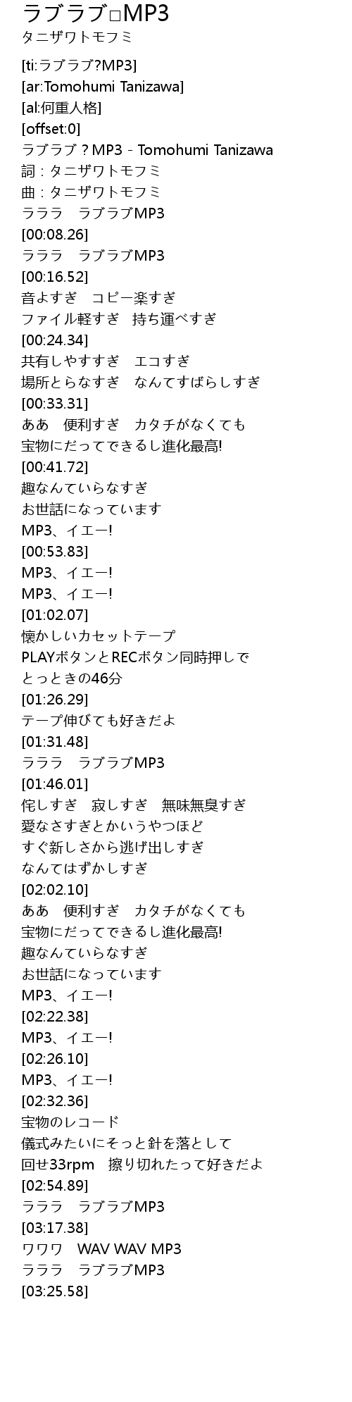 | [00:09.24] | ラララ ラブラブMP3 |