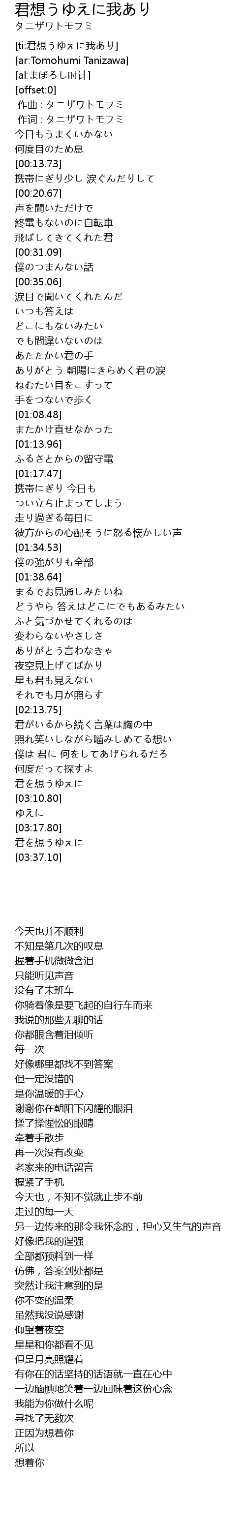 | [03:32.50] | 君を想うゆえに |