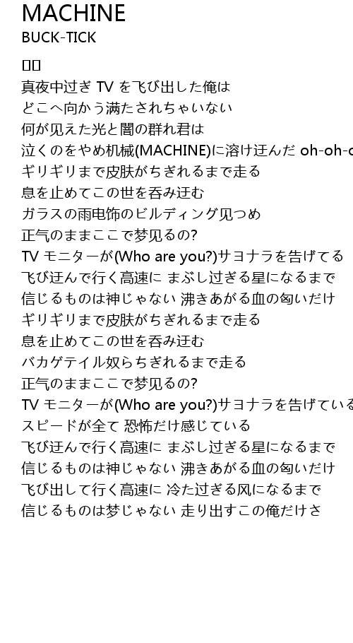| 泣くのをやめ机械(MACHINE)に溶け迂んだ oh-oh-oh | |