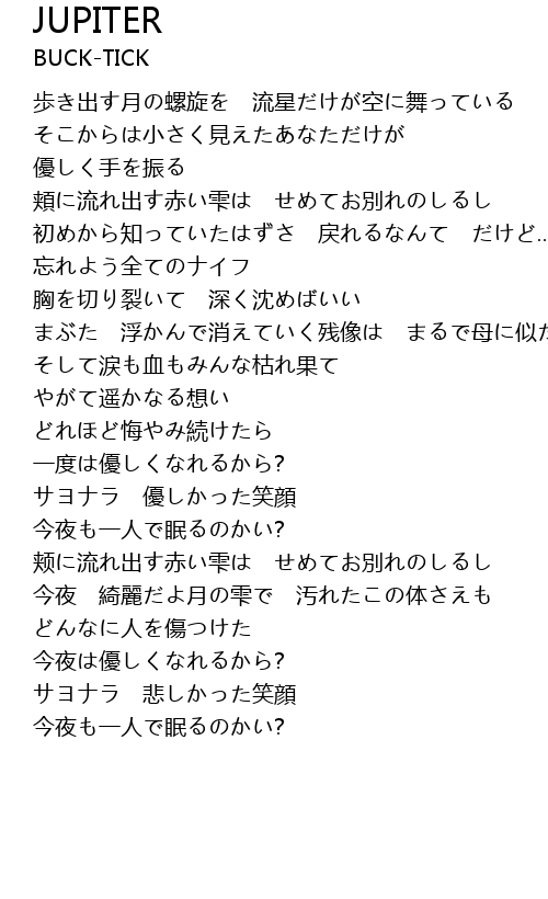 | [00:15.95] | 歩き出す月の螺旋を 流星だけが空に舞っている |