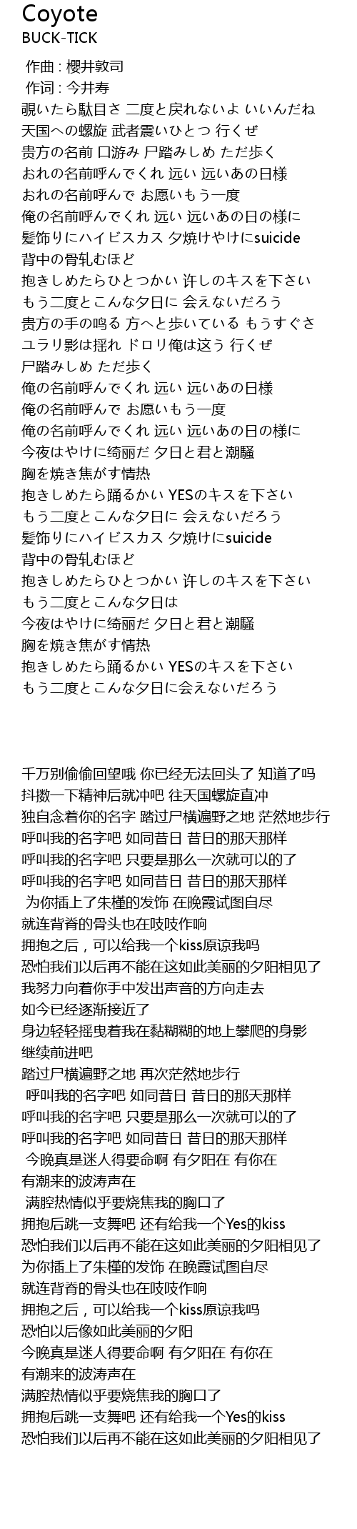 | [00:00.00] | 作曲 : 櫻井敦司 |