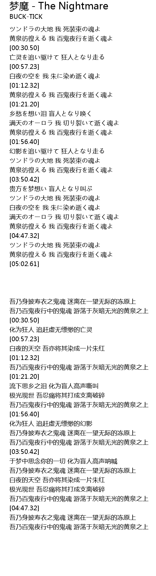 | [04:54.09] | 吾乃百鬼夜行中的鬼魂 游荡于灰暗无光的黄泉之上 |