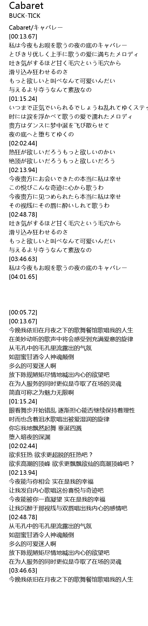 | [00:05.72] | Cabaret/キャバレー |