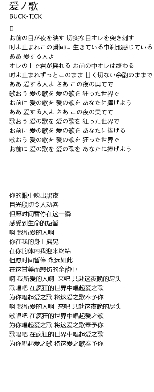 | 歌おう 爱の歌を 爱の歌を 狂った世界で | |