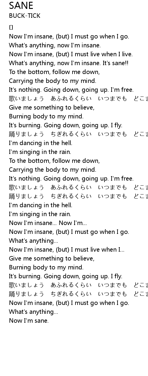| Now I'm insane, (but) I must go when I go. | |