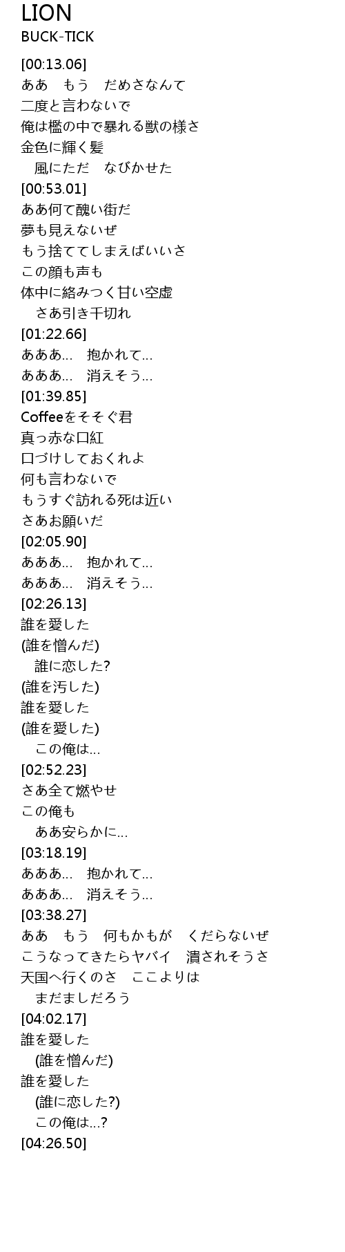 | [01:57.34] | もうすぐ訪れる死は近い |