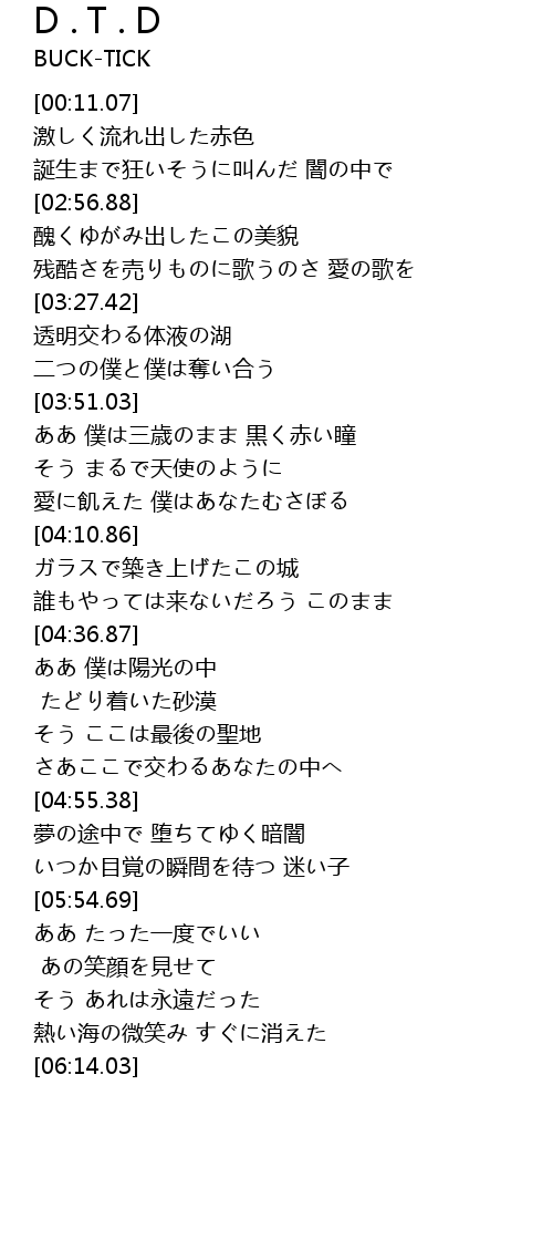 | [03:52.23] | ああ 僕は三歳のまま 黒く赤い瞳 |