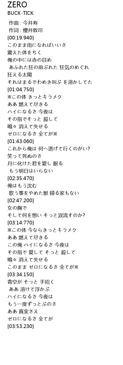 | [00:01.00] | 作词 : 櫻井敦司 |