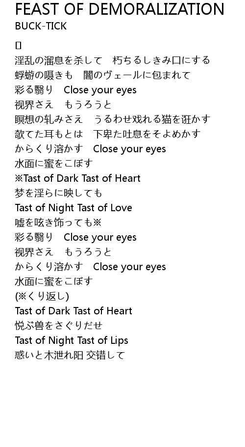 | 淫乱の溜息を杀して 朽ちるしきみ口にする | |
