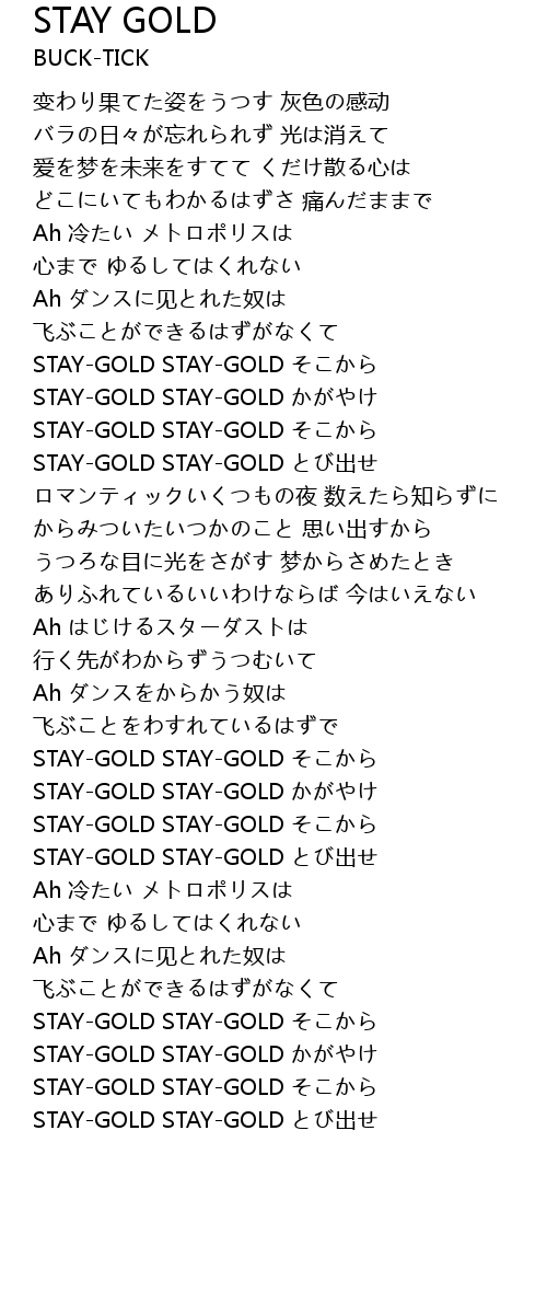 | [02:34.92] | STAY-GOLD STAY-GOLD そこから |