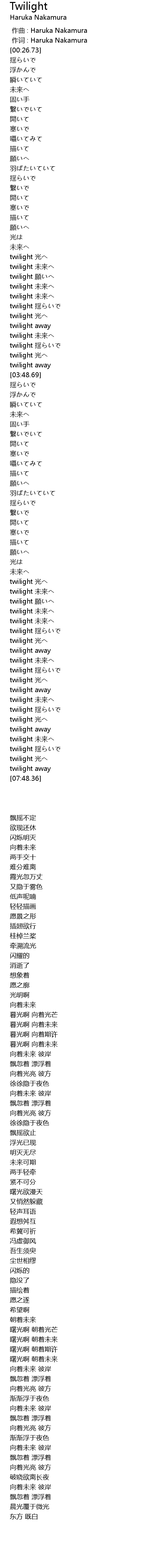 作词 : Haruka Nakamura |